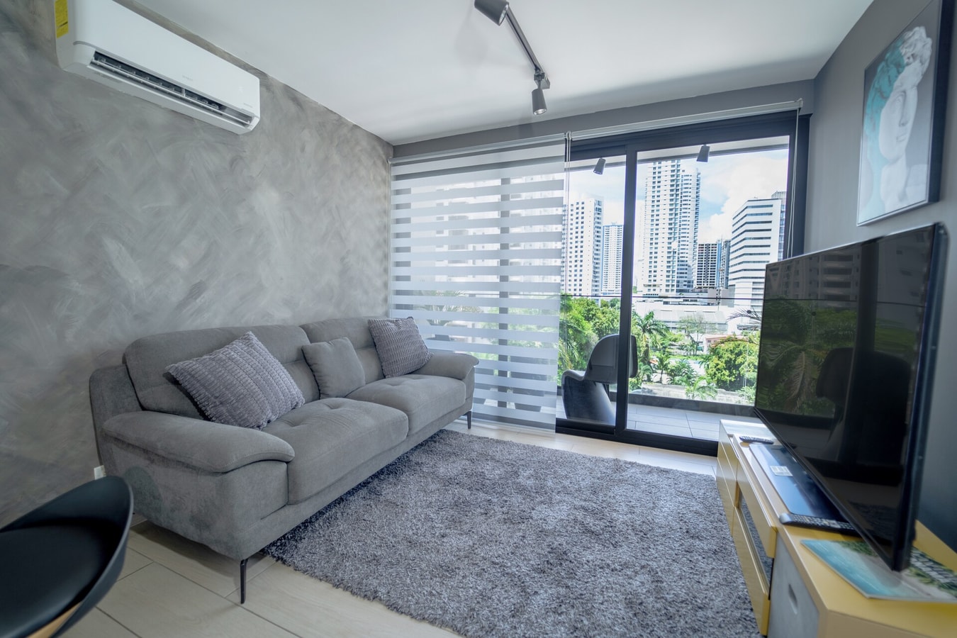 This elegant 1-bedroom apartment in the exclusive Living 73 building offers a perfect blend of luxury, comfort, and modern design in San Francisco, one of Panama City’s most desirable neighborhoods. It features a spacious living room, a private balcony with city views, a fully equipped kitchen, laundry area, and a walk-in closet for added convenience.